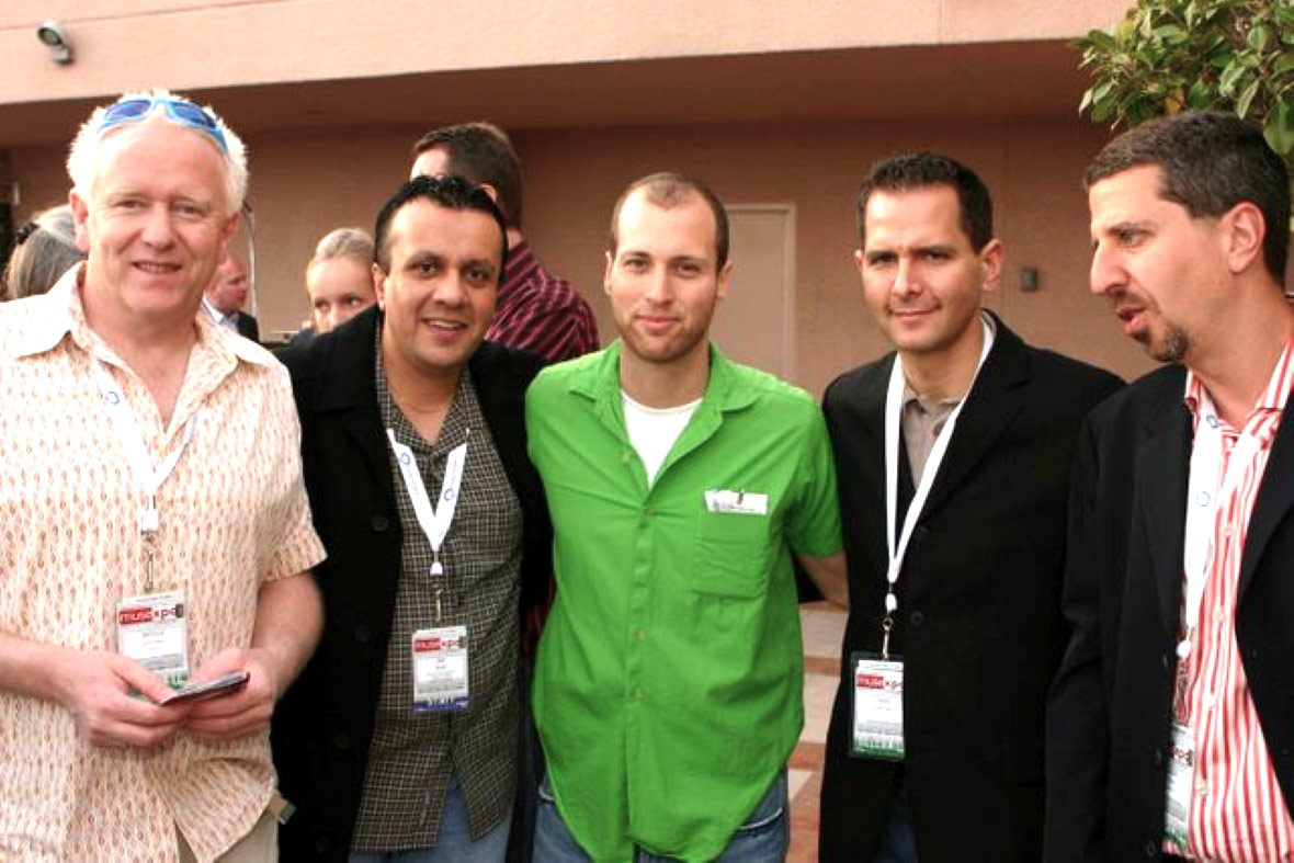 MUSEXPO 2006 was the first global music business conference in the world where YouTube’s Co-Founder spoke. Pictured (L-R) are renowned music business and A&R executive Ron Fair, legendary DJ Nic Harcourt, Marty Bandier (former Chairman & CEO, Sony/ATV Music Publishing), Steve Schnur (Worldwide Executive & President of Music, Electronic Arts), and Chad Hurley (Co-Founder, YouTube).