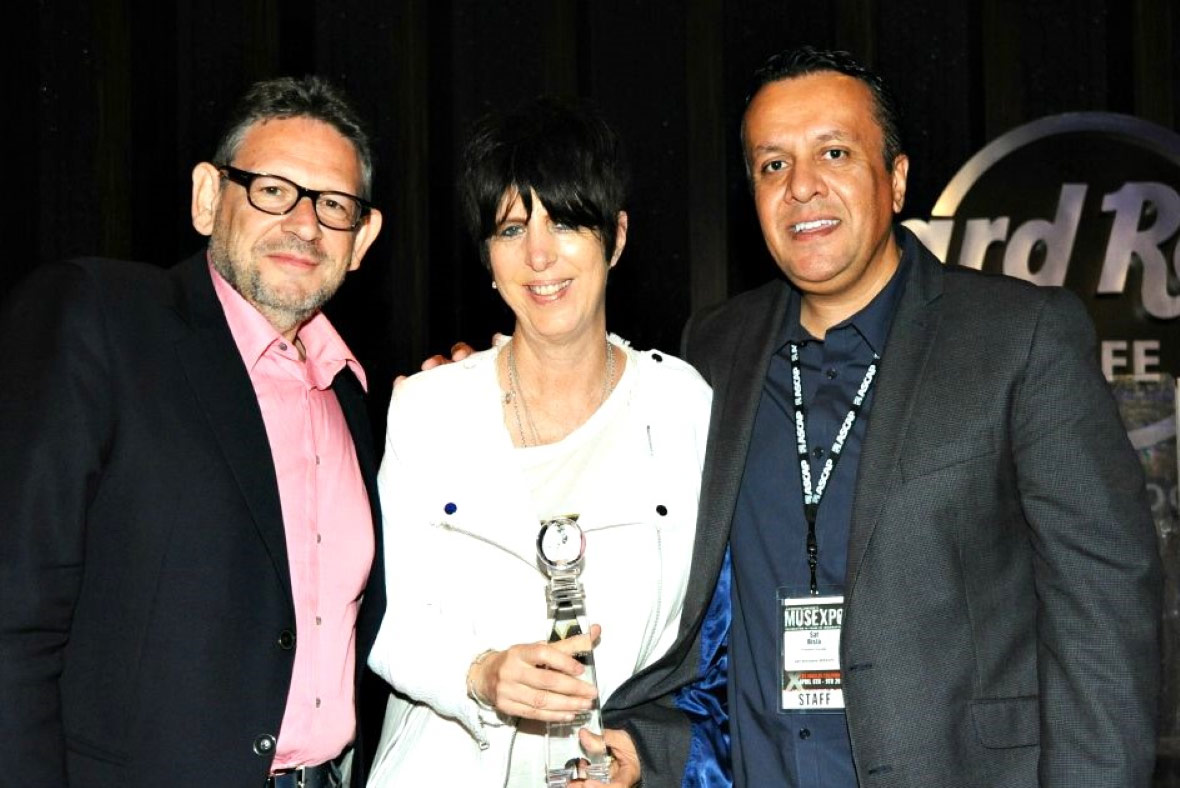Receiving the “International Music Person of the Year” award at MUSEXPO 2016 was Emmy, Grammy, and Oscar Award winning songwriter Diane Warren with her two close friends including Sir Lucian Grainge (Chairman & CEO, Universal Music Group) and Sat Bisla.